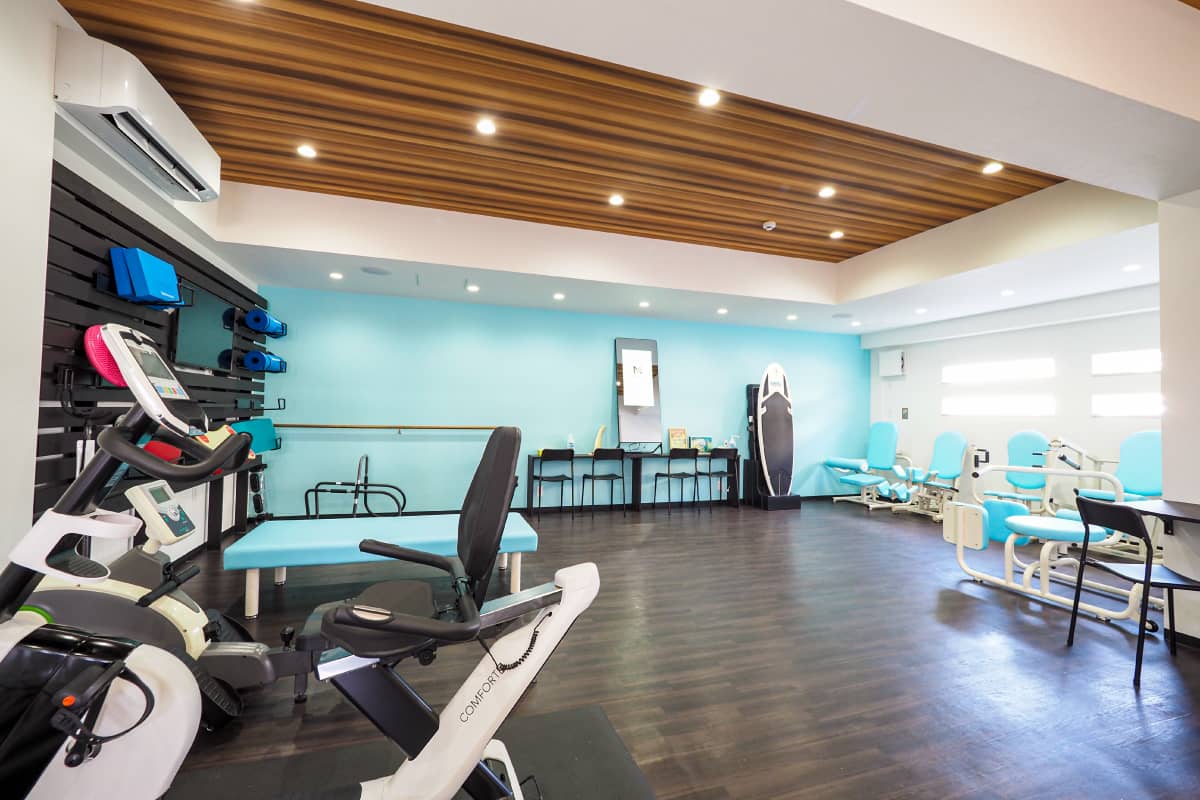日常動作をはじめ、“できない”動作を“できる”動作に!ブルーの爽やかな館内で動作改善型リハビリに本気(マジ)で取り組んでいます!入浴設備もございます。